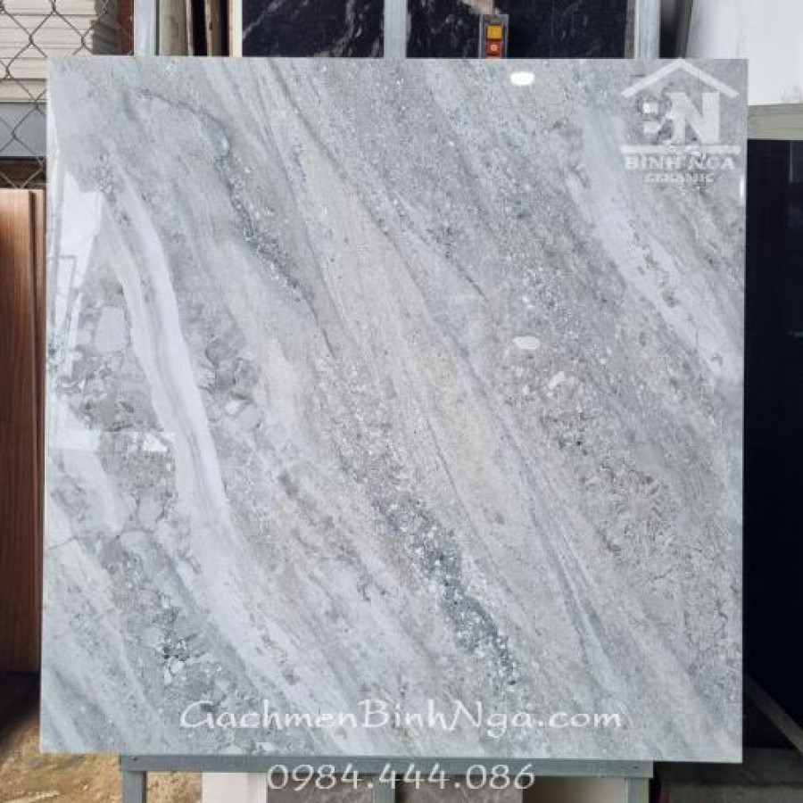 Bề mặt gạch nhẵn bóng, với họa tiết màu xám nhạt, vân đá marble giúp không gian trở lên hiện đại, tiện nghi sang trọng.