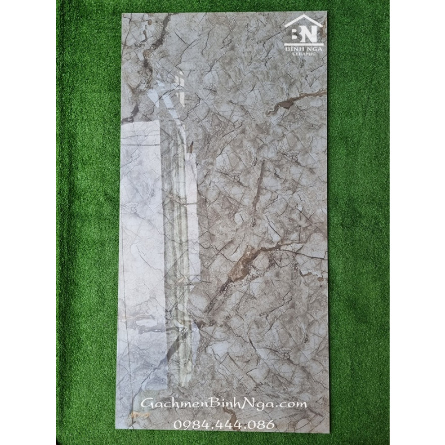 Gạch ốp tường 60x120 bóng kính màu xám vân đá tự nhiên