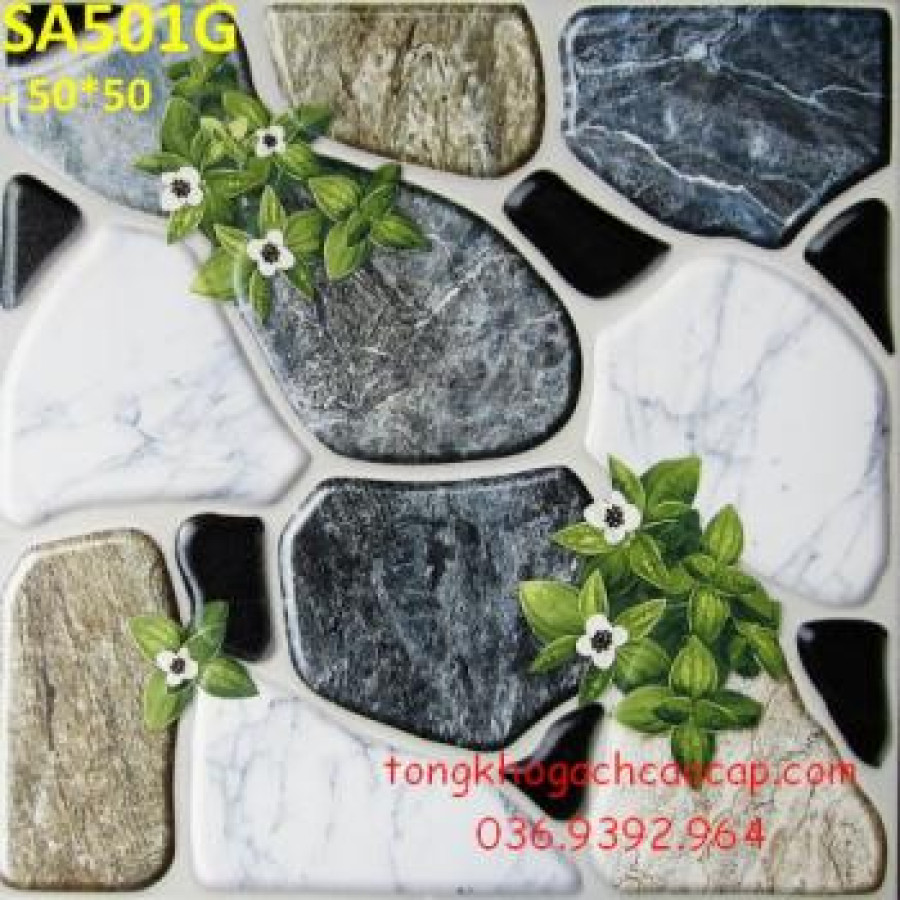 Gạch sân vườn 50x50 hoa cỏ giả đá cục sugar
