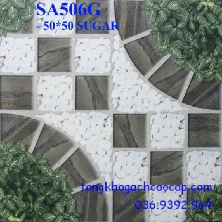 Gạch sân vườn 50x50 hoa cỏ giả đá cục sugar