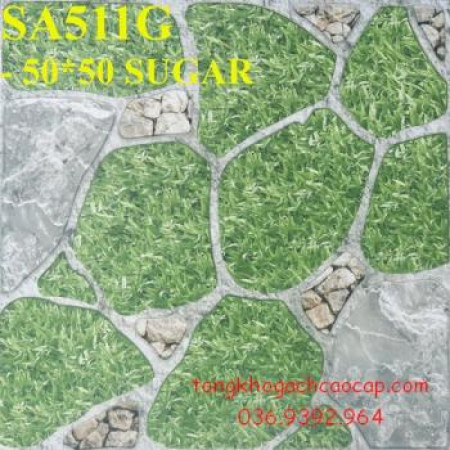 Gạch sân vườn 50x50 hoa cỏ giả đá cục sugar
